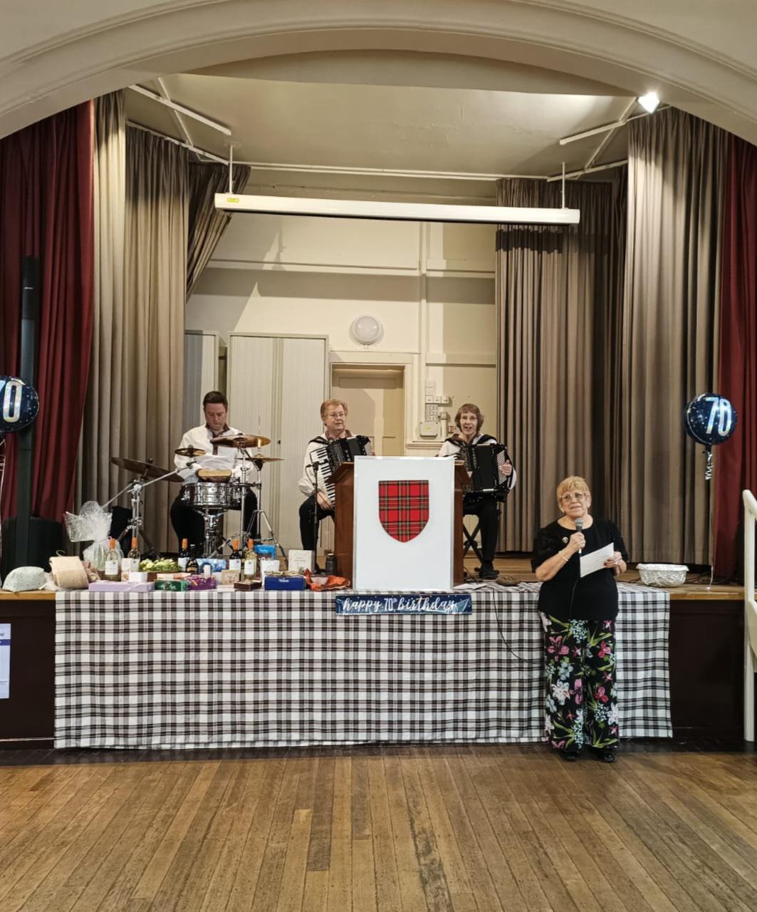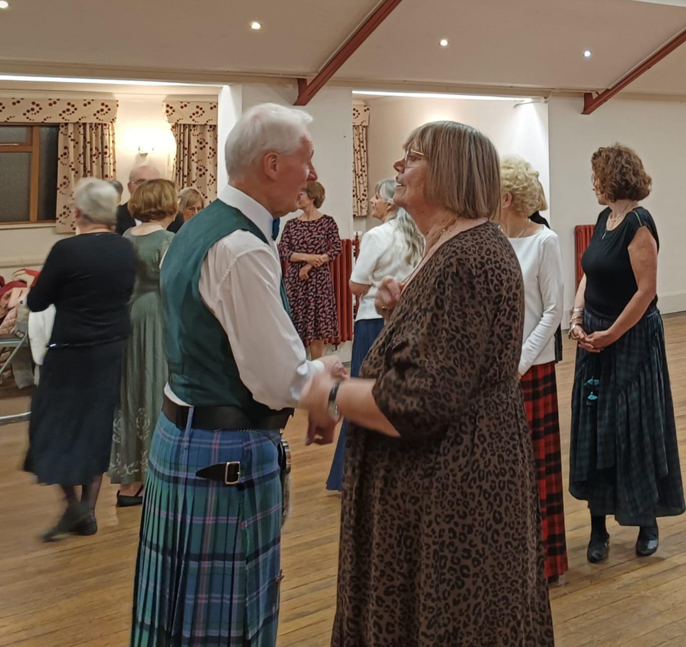 Scottish Country Dancing includes jigs, reels and the slower strathspey dances, usually in "sets" of 3 or more couples, but you don't need to find your own dancing partner. All our members dance with each other and the ladies who are experienced dancers are able to dance in either a lady or a gentleman's position. We have many members who come along on their own as well as friends and couples.